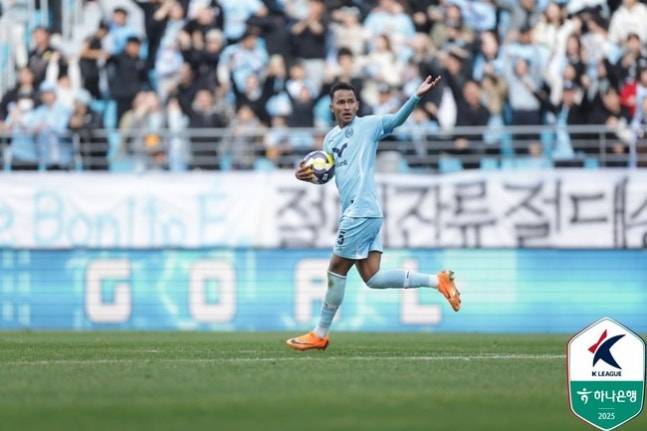 进入到下半场,大邱主帅金炳秀终于将“王牌”塞西尼亚换上。巴西人登场后,球队的组织进攻确实被盘活了,他们开始无数次接近破门。但此时,另一块场地传来进球的消息,第49分钟,光州FC的雷伊斯在本方中锋朴仁赫和对手后卫李弦容的争抢中抢到皮球,用右脚将球打入,0-1!水原FC主场落后,这也就意味着另一场比赛蔚山和济州的比赛踢成什么结果,两队都不会有“危险”。