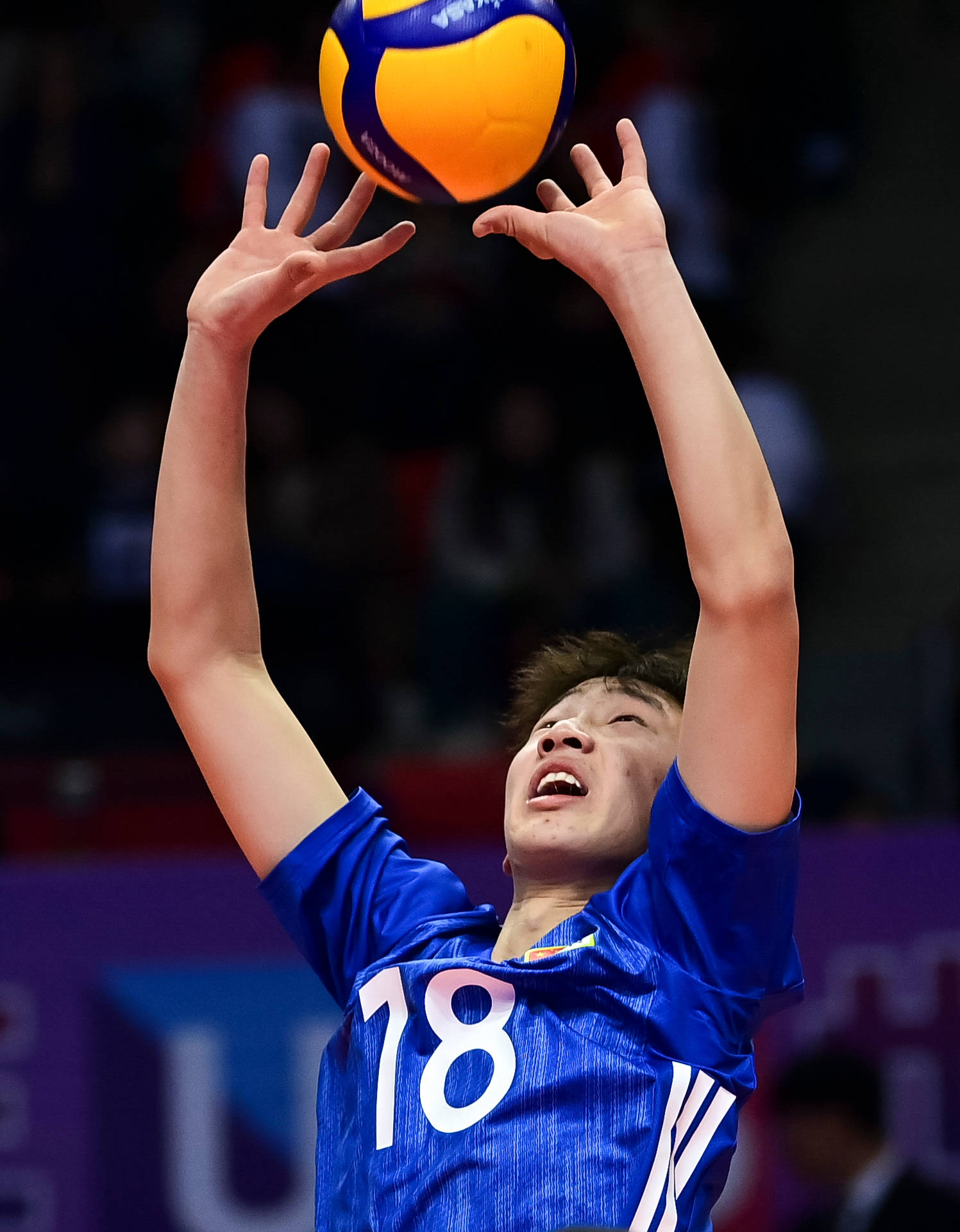 12月5日,中国男子一队球员张洪昊在比赛中传球。 新华社记者 邹竞一 摄
