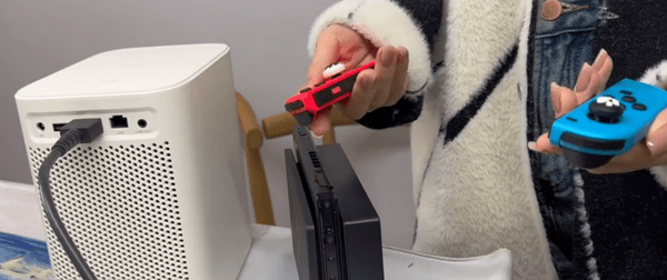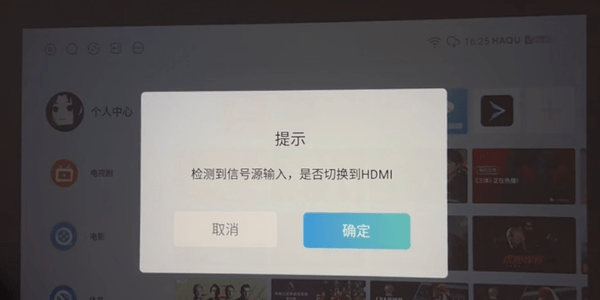 然后系统弹出提示切换HDMI,选择哈趣K1 Pro投影仪游戏模式。把SWITCH游戏机手柄连接调试,并了解哈趣K1 Pro投影仪游戏画面状态。