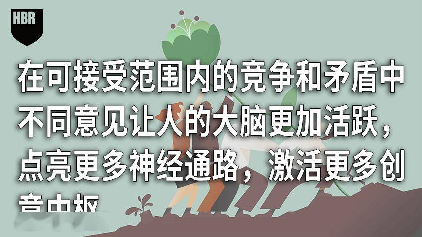 许多领导力专家提出,管理变革的最佳方式是让所有人一条心,但我们的研究表明,通常对于大规模变革或创新项目,适当的不同意见也同样重要。科学研究表明,在可接受范围内的竞争和矛盾中,不同意见让人的大脑更加活跃,点亮更多神经通路,激活更多创意中枢。简言之,有了更多让人独特、创新、激情四溢的东西。