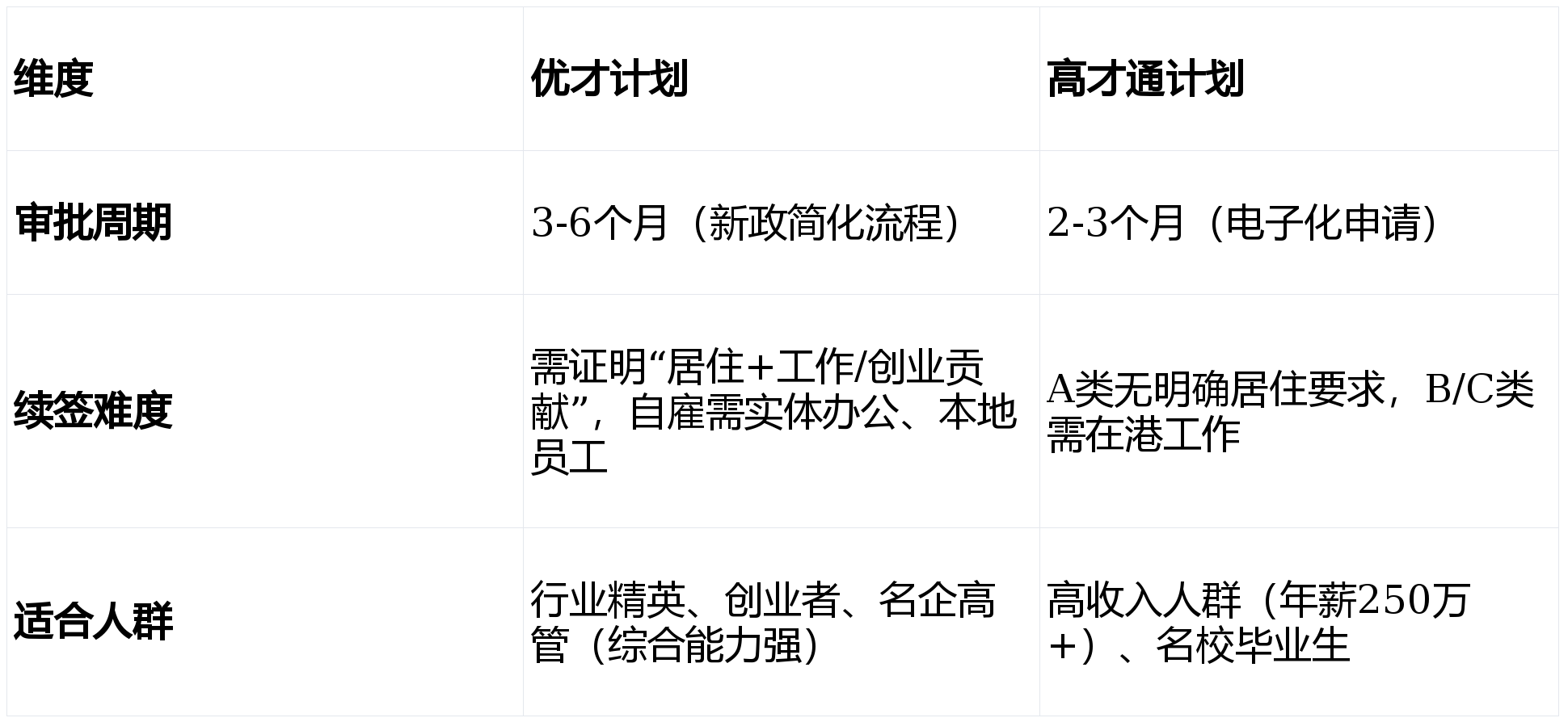 香港优才和高才通的续签条件和侧重点有所不同,以下是两大主流计划的续签要求梳理:
