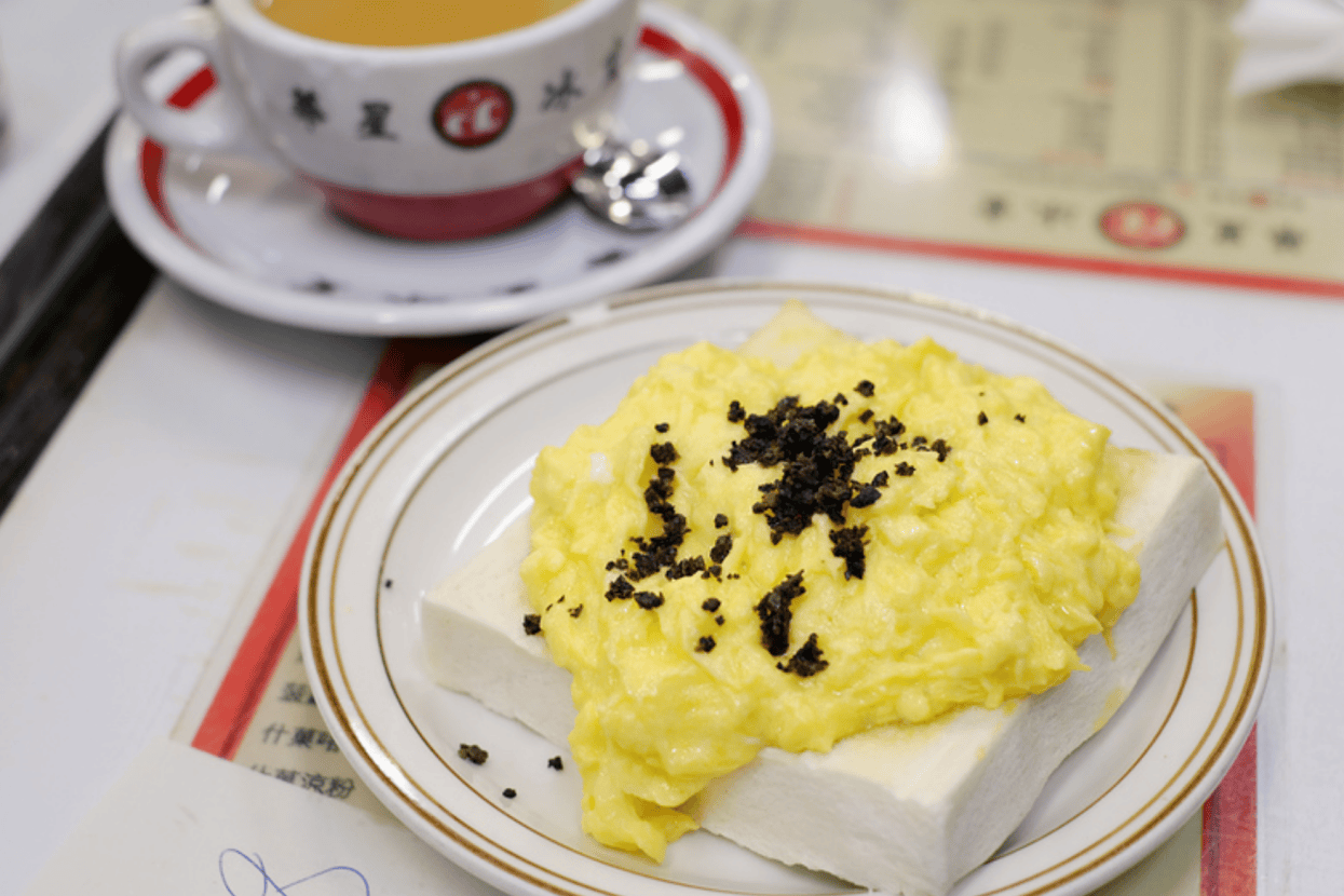 华星冰室菜单中最多人推荐必点的是黑松露炒蛋多士,蛋滑嫩到一个夸张的境界,独特的香气和口感,没有吃过以前真的很难想象,不枉费波比一大早就来排队,不只游客喜欢,是连香港人也很推荐的美食喔。