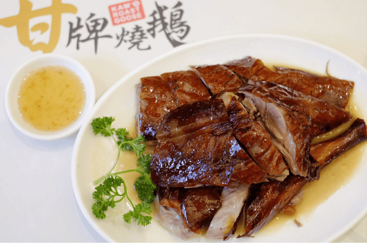 多人推荐必吃餐点有,甘牌烧鹅脾濑粉 (限量)、烧鹅乳猪饭、化皮乳猪等。烧鹅外皮金黄发亮、肉汁丰腴,每口皆是浓厚鹅油香,搭上祕传酱汁完美,台湾分店完全比不上,正宗就是优秀。